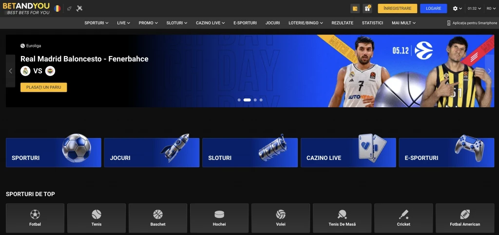 BetAndYou acceptă pariuri pe meciurile din Eurocup, campionatele naționale din Europa, Asia și SUA, turneele internaționale și campionatele echipelor naționale.