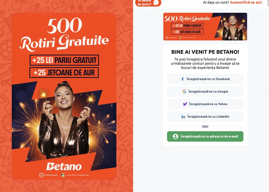 Doar utilizatorii adulți care nu s-au înregistrat anterior la Betano și care locuiesc în România pot crea un cont.