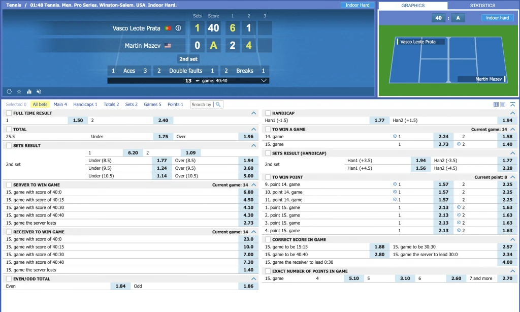 Cotele de până la 1,90-1,90 pot fi găsite pe rezultatele de dublu în meciurile importante.