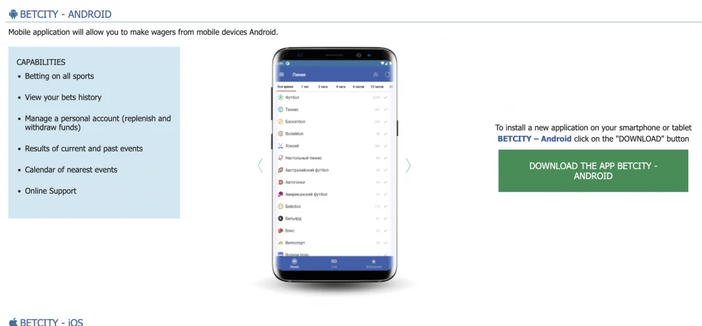 Software-ul Betcity pentru iPhone și iPad este accesibil pentru descărcare în App Store. Aplicația mobilă oferă o interfață intuitivă și funcționalitate completă a platformei desktop. Programul operează fără impedimente din partea furnizorilor de internet.