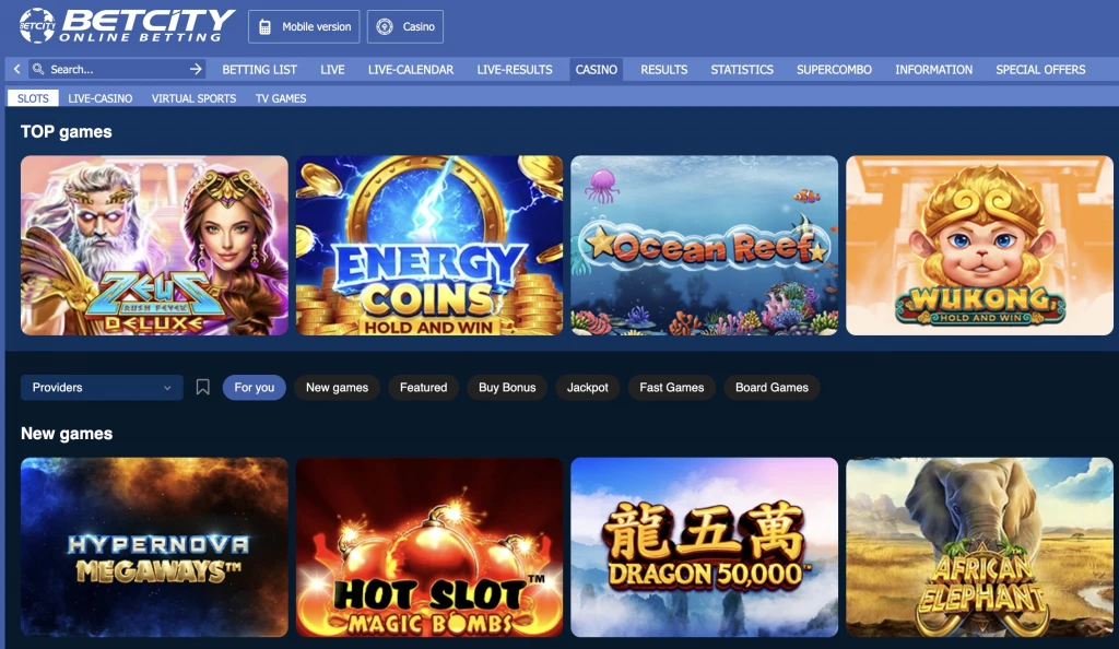 Betcity este o casă de pariuri internațională care acceptă pariuri din anul 2003. Casa de pariuri "Betcity" oferă peste 20 de sporturi, un bonus de bun venit cu condiții favorabile de rulaj și o înregistrare simplă.