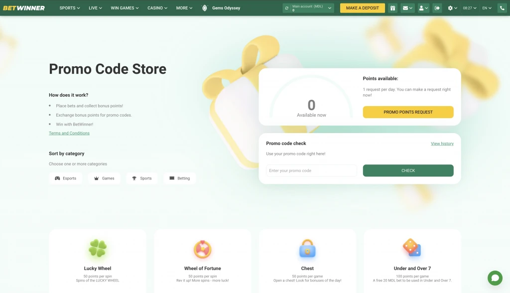 Jucătorii primesc puncte pentru pariuri. Punctele acumulate pot fi schimbate cu coduri promoționale pentru pariuri gratuite în Magazinul de coduri promoționale, de exemplu, pentru un expres de hochei sau un simplu de tenis.