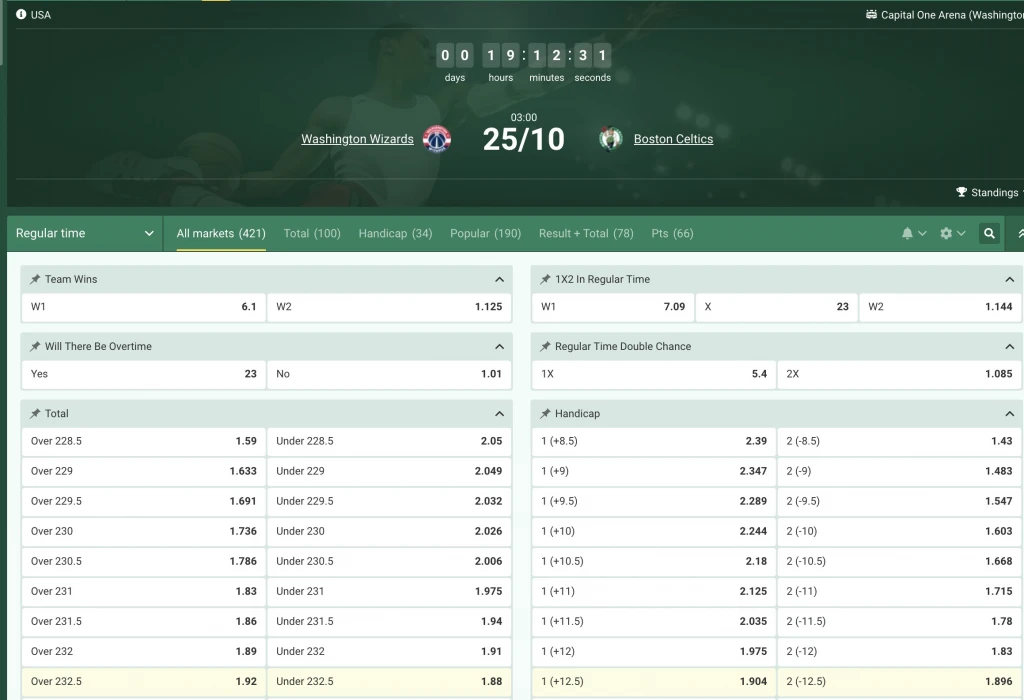 În linie, clienții vor găsi oferte pentru competiții până la nivelul al doilea până la al patrulea, în funcție de sport și țară.