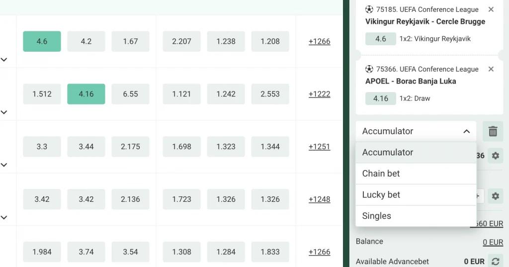În cupon, jucătorul poate alege ce să facă atunci când se modifică cotele - acceptă cote mărite, acceptă orice modificări, solicită confirmare.