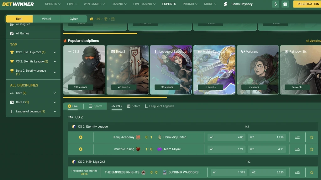 Betwinner acoperă majoritatea competițiilor sportive cibernetice globale și regionale.