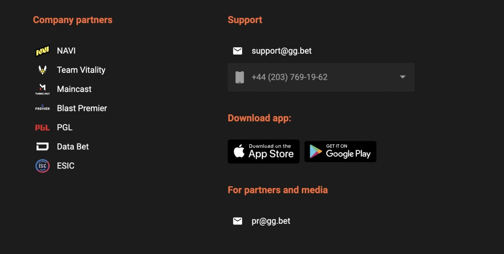 Platforma GG.bet oferă o funcție de conversație în timp real, care permite utilizatorilor să interacționeze cu agenții operatorului de pariuri. În plus, consilierii primesc cereri și prin intermediul corespondenței electronice.