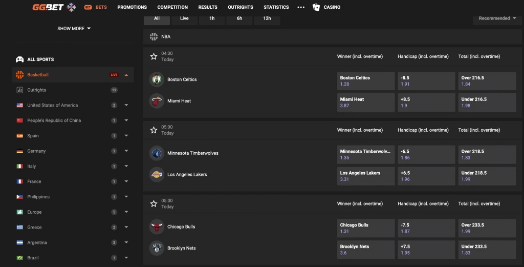 Oferta de pariuri a ggbet.com este concepută de echipa internă de specialiști ai firmei. Operatorul de pariuri primește mizele pentru competiții din cincisprezece ramuri sportive și un număr identic de discipline de esports. Comisionul fluctuează între 8-10%. În cazul pariurilor în timp real, acesta se majorează până la 12-14%.
