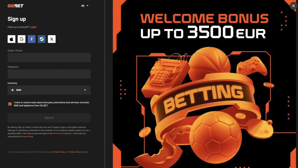 Asemeni altor platforme, puteți efectua pariuri pe portalul GG.bet doar după înregistrare. Pentru a crea un profil, operatorul vă solicită să completați un chestionar succint, să indicați o adresă electronică validă și să selectați o parolă. În etapa ulterioară, este necesar să confirmați vârsta și adresa electronică prin intermediul unui link expediat. După activarea profilului, puteți proceda la plasarea mizelor.