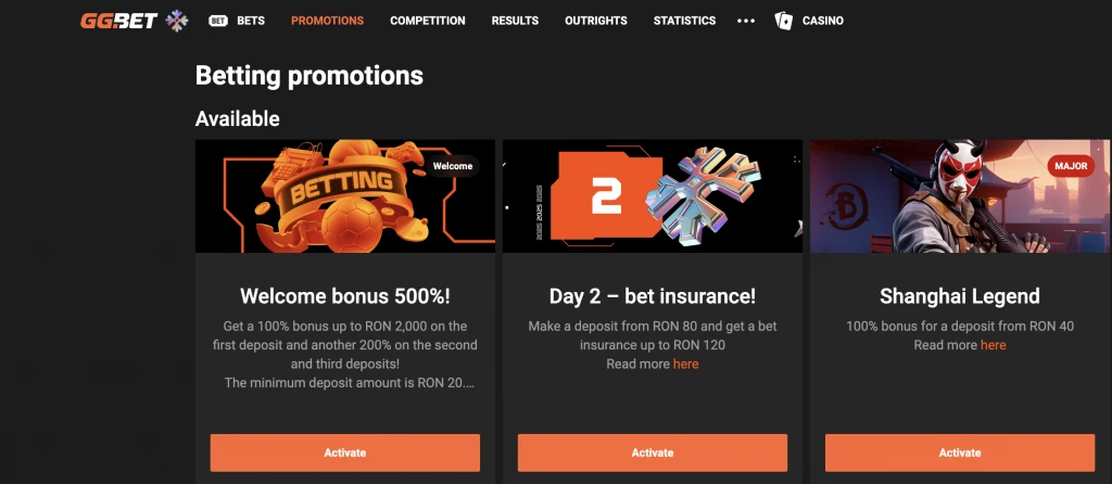 GG.bet propune tuturor pariorilor șansa de a lua parte la campanii promoționale dedicate diverselor evenimente și ocazii speciale. În plus, operatorul de pariuri recompensează clienții fideli cu beneficii suplimentare.