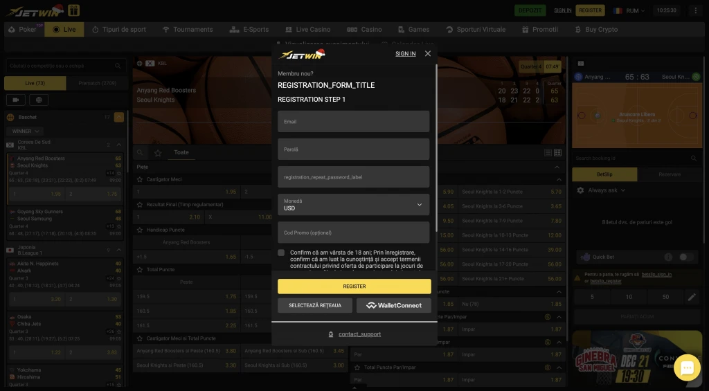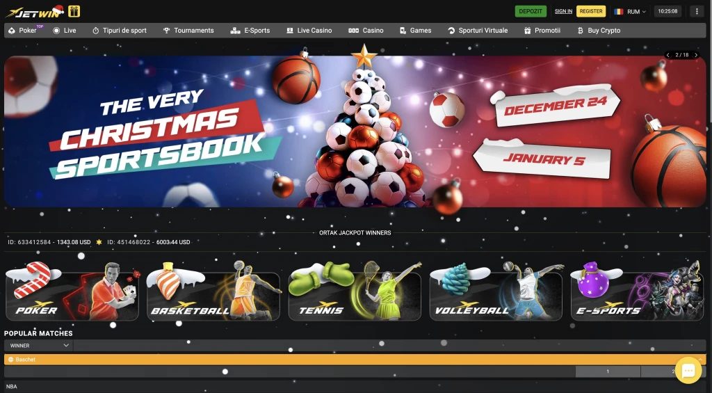Principalele secțiuni ale meniului sunt situate deasupra bannerului. Pentru a face un pariu, faceți un depozit, deschideți fila Sport, familiarizați-vă cu lista de sporturi disponibile și faceți o predicție. Funcționalitatea completă a casei de pariuri Jet Win este disponibilă numai pentru jucătorii autorizați. Înregistrarea este necesară pentru a intra în contul personal.