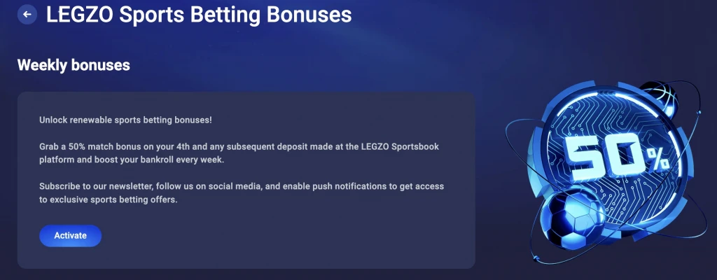 Legzo nu are premii sau recompense pentru organizarea acceptării pariurilor sportive.