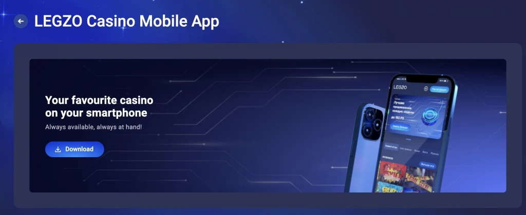 Utilizatorii pariază pe sporturi la Legzo într-o versiune adaptată pentru mobil a site-ului. Au fost dezvoltate aplicații pentru iOS și Android.