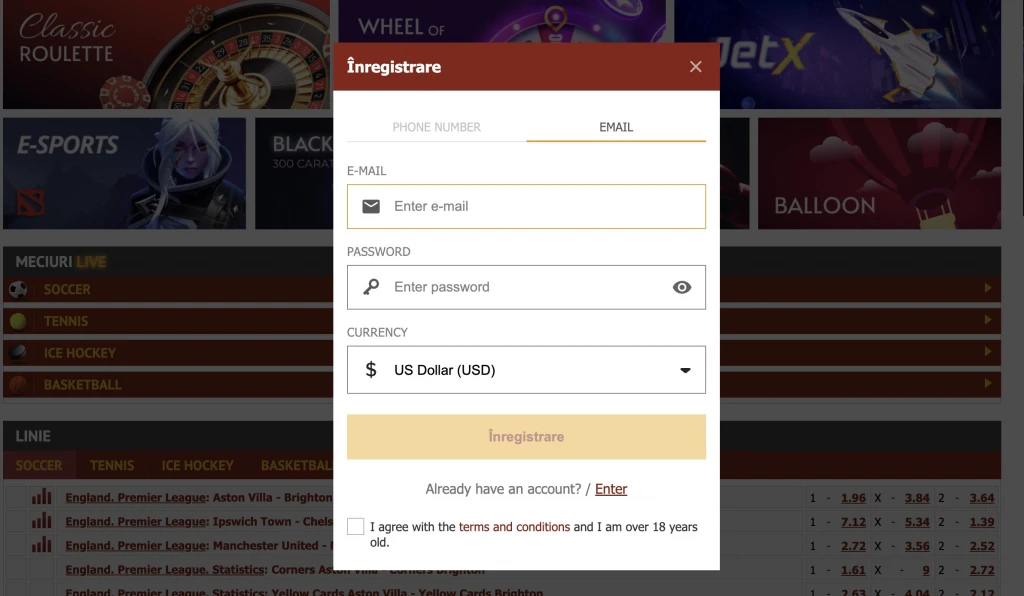Pentru a finaliza înregistrarea completă, jucătorul trebuie să completeze un chestionar detaliat, să specifice datele personale în acesta: nume și prenume, e-mail, număr de telefon, monedă, parolă și întrebare de control.