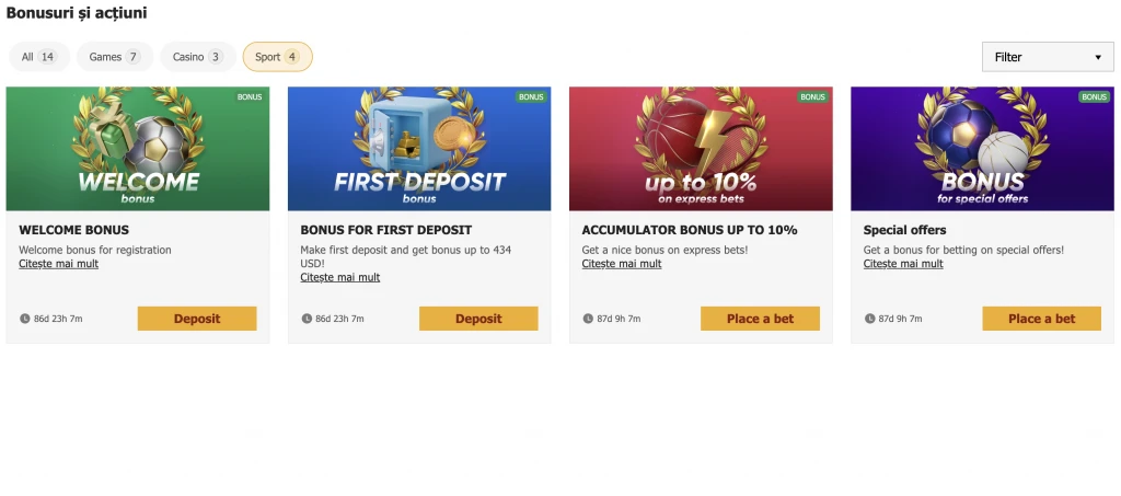 Casa de pariuri organizează în mod regulat promoții sincronizate cu diverse evenimente sportive majore sau sărbători.