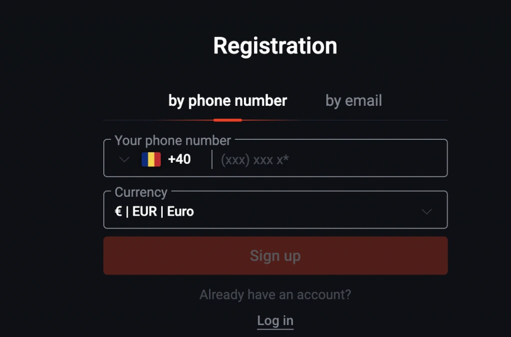 prin număr de telefon - introduceți numărul de telefon, alegeți moneda contului și faceți clic pe „Înregistrare”;