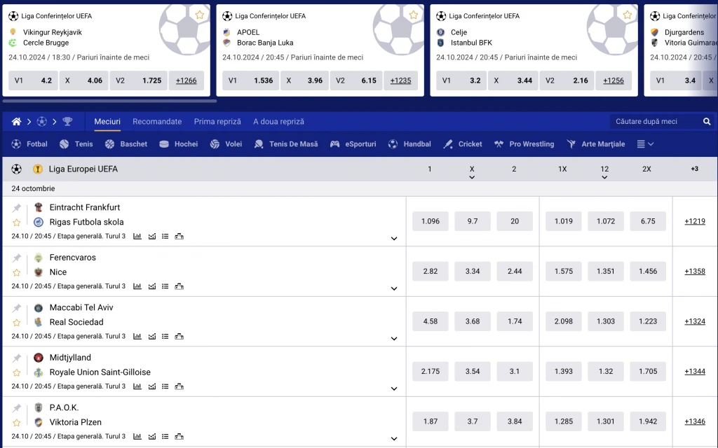 Pentru meciurile de top, casa de pariuri oferă o linie profundă, în medie mai mult de 1500 de poziții. Variabilitatea pariurilor pentru alte lupte depinde de statutul lor și de prestigiul campionatului. Adesea, jucătorii pot paria doar pe rezultatele de bază (victorie și egalitate), pierderi și totaluri.