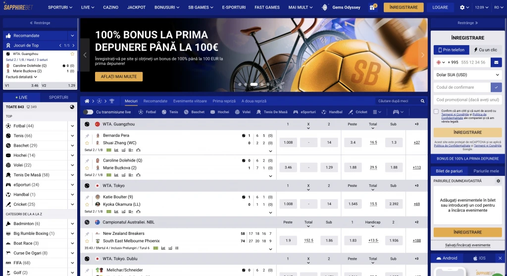 Casa de pariuri Sapphire Bet înregistrează jucători de oriunde din lume, astfel că site-ul este tradus în peste 60 de limbi, inclusiv română. Interfața portalului este simplă în ceea ce privește navigarea. Puteți sorta sporturile și campionatele în meniul din stânga, puteți merge la alte secțiuni prin intermediul filelor de pe panoul de sus.