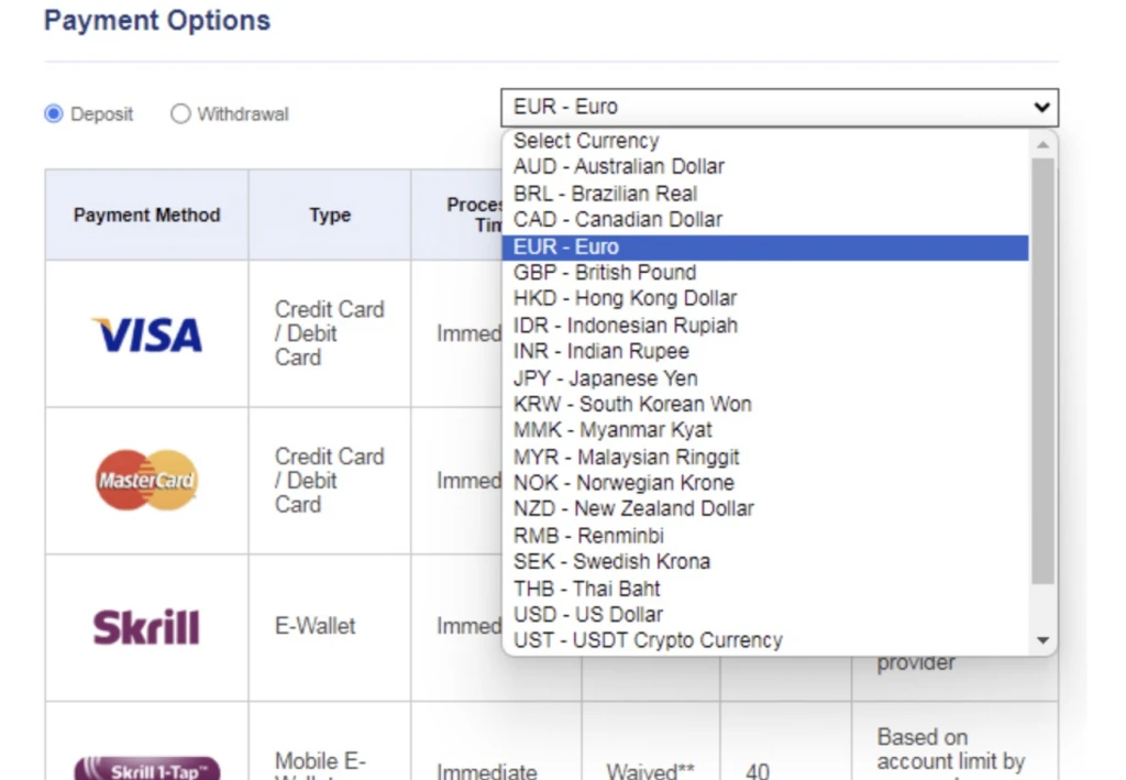 Suma minimă de depunere este de 40 € sau echivalentul în altă monedă selectată.