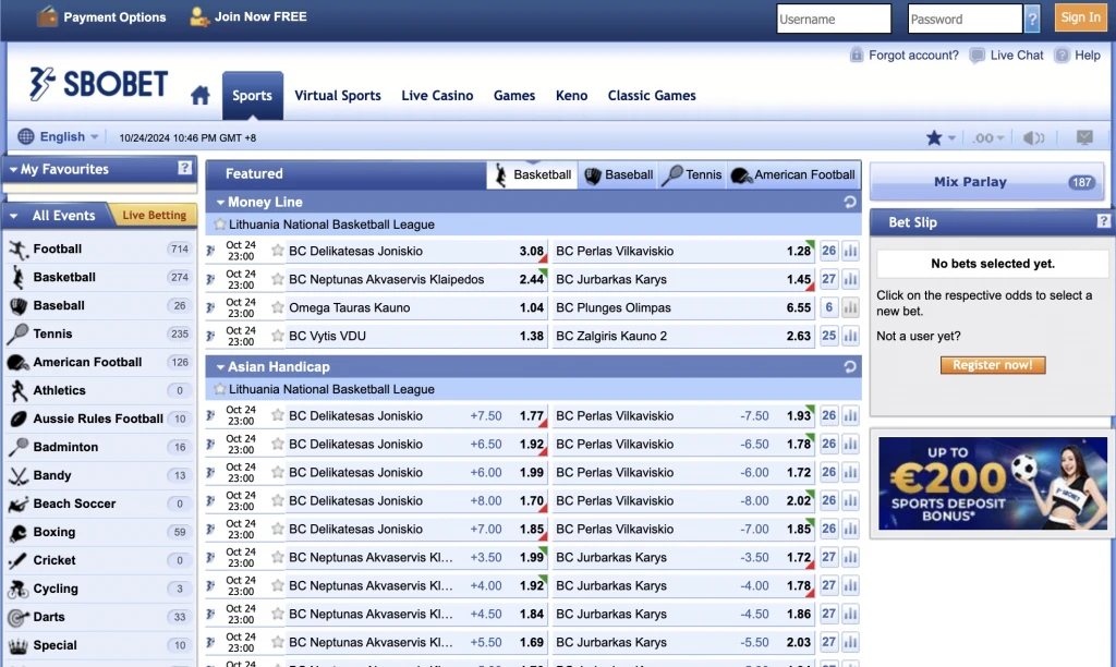 Sbobet nu are un cont demo pentru pariuri sportive. Puteți paria doar cu bani reali.