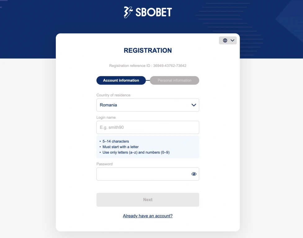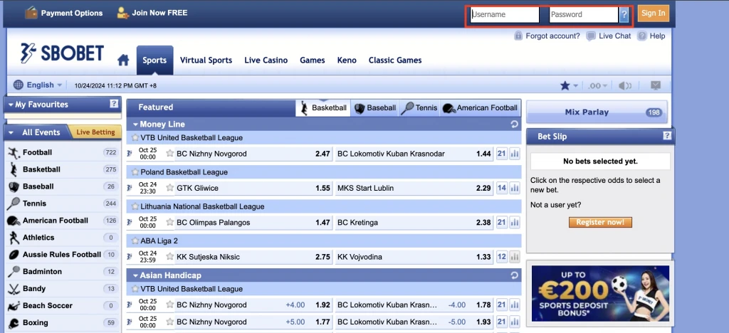 Pentru a vă conecta la contul dvs. de pe site-ul oficial Sbobet, deschideți portalul și apoi introduceți numele de utilizator și parola în colțul din dreapta sus al paginii. Apoi, faceți clic pe butonul Sign In.