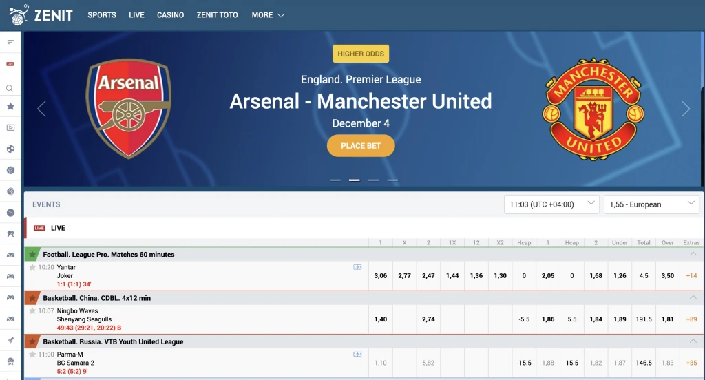 Linia de pariuri a Zenitbet include 22 de sporturi și toate disciplinele cibernetice populare. În plus, compania deschide piețe pentru pariuri pe evenimente politice (de exemplu, rezultatul alegerilor parlamentare din SUA).